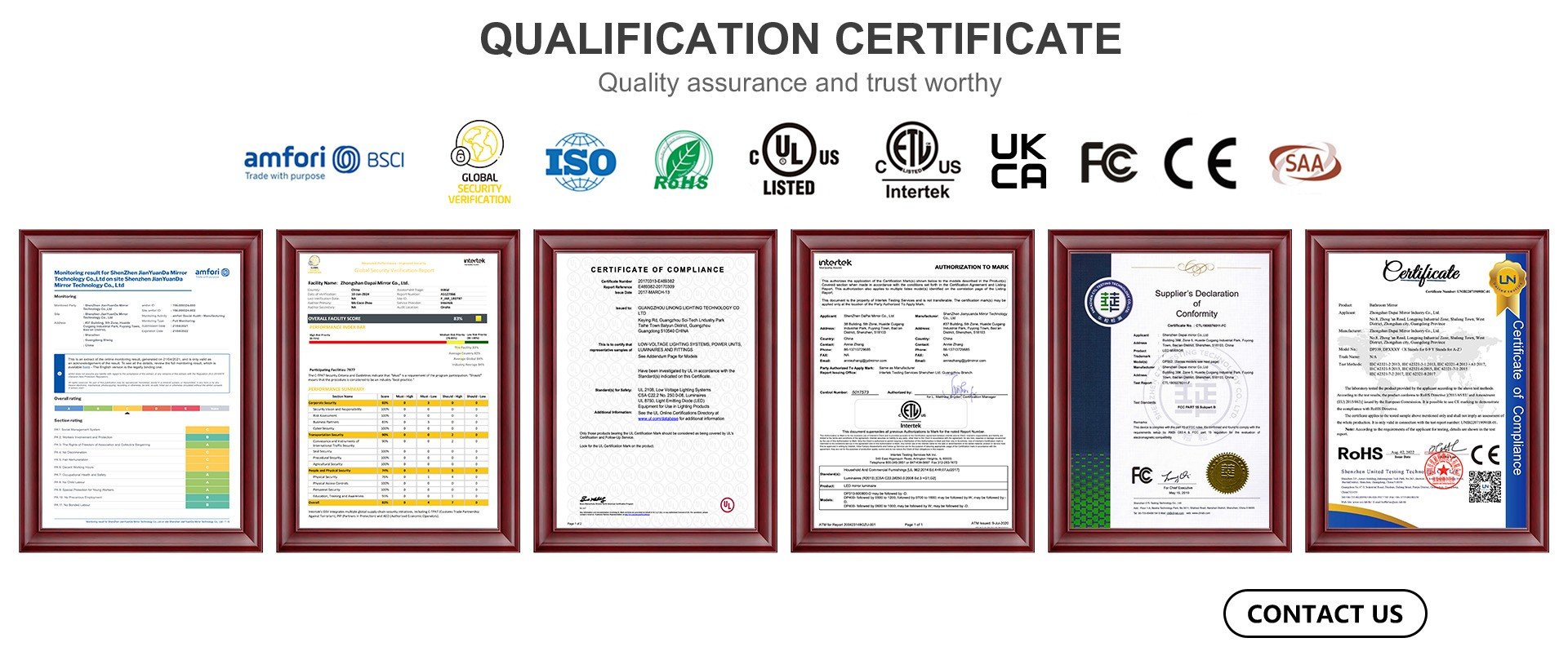 Mirrors passed UL, ETL, CE, FCC, ROHS, UKCA, certificate.